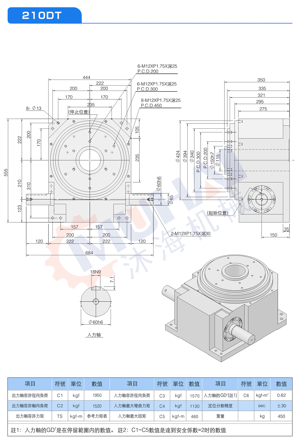 此系列機種之尺寸設計特性輿凸緣型功能相似,于驅動運轉上可承受超大軸向負載及垂直徑向壓力,在輸出端有一凸起固定盤面及大孔徑空心軸,可搭配設置動態、靜態自動化周邊設備,可將動力源之電、油、氣等管路置于空心孔內,此系列機種廣泛應用重負載、直結自動化設備之各類種機構及產業機械等,作同步自動化間歇驅動。